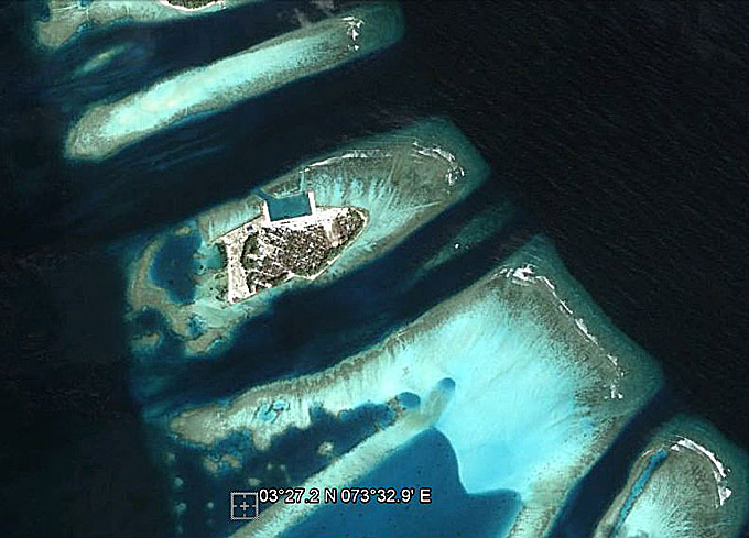 I found this anchorage using Google Earth. There are quite a few coral heads and our buddies on s/y Elaine got their anchor fouled and had to free it by diving. There is a local harbour on Keyodhoo island to the north (clearly seen in the photo), which some cruisers have reported useful.