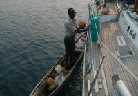 (Click on a photo for a larger version) We cleared out from Belize at Big Creek near Placencia, but had to wait a couple of days after that for suitable weather for eyeballing through the barrier reef. When the clouds finally cleared we staged at Ranguana Cay, near one of the reef cuts, for one night. The next day with the sun high in the sky we found our way out and set course for Utila, the westernmost of the Bay Islands of Honduras, 80 nautical miles to the east. At daybreak we were surprised of how high and close to us the mountains of the Honduras mainland looked. The country consists to 80 per cent of mountains with an elevation of up to 3.000 meters. The rest is fertile plains close to the coast and valleys between the mountains. Since the afternoon of the previous day we had seen several cargo ships carrying logos such as Fyffes, Chiquita and Dole. We were approaching the country where the word Banana republic was invented. We anchored in Puerto Este, the main habitat of Utila before noon. The sun was already high in the sky and we had no problems finding our way in between the reef and shallows. As usual, there were no markers although this is a port of entry. Because of historical reasons the main language on the islands of Honduras is English, even though Spanish is the official language. Most of the islanders are black, but there are many descendants of Brittish immigrants. The lady at the cashier of the hard ware store told us that her ancestors had arrived from Scotland in 1815. She looked as if she had got of the plane yesterday herself. A couple of days later we sailed over to the mainland to take a look at La Ceiba Shipyard, where we planned to haul out Scorpio and leave her on the hard for the summer, during our vacation in Finland. Approaching the breakwaters we could see the wreck of the huge dredge that had sunk in there in a northerly blow a couple of weeks earlier (the same one that we hade weathered among the mangroves at Twin Cays in Belize). The wreck now forms a sort of an extension to the eastern breakwater. A little more to the west and it would block the entrance completely, but now we only had to dodge it slightly. The damage is said to be in the $20.000.000 range and the insurance company has written it off as a total loss. One more addition to the already considerable armada of ghost ships in this area of the world. We found a convenient berth at the charming Lagoon Marina, a mile up the river and neighbor to La Ceiba Shipyard. The owners Toni and Rita had arrived here only 4 years earlier and already had established an awesome estate. At their arrival there was nothing here; no roads, potable water or electricity. Today they are the owners of a well constructed, tastefully designed and well maintained property only 15 minutes drive from La Ceiba, the third largest city in Honduras. The shipyard, owned by Americans, was founded a year later. Also there everything seemed to be functioning. We met with the manager Dale and made appointments for the haul out three weeks later. We made several trips by taxi to La Ceiba for provisioning and searching for spare parts for the constantly pending projects aboard; "Cruising is boat repair in exotic places”. We were as always amazed by the amount of guns being carried around. The streets and shops were full of security guards with imposing pump rifles; street sweepers, they are called. At one time we sneaked in to have a cool bear at a bodega and discovered that iron bars behind the counter sheltered the staff. The beer was handed out between the bars in exchange for the payment. We guessed that we might have strayed too long out of the safe areas, but all vent well – probably because it was in the middle of the day. I would not recommend a visit after dark. After a week we headed out to the islands again for our last two weeks. The weather was now very hot and humid and we hoped for some cooling breezes in the Cayos Cochinos and the island of Roatan. We stayed several days at the charming Cochino Grande using the courtesy moorings laid by The Plantation Beach Resort. The only problem here was the lack of wind. Thereafter we visited both The French Cays and West End at Roatan. In the French Cays anchorage we had a week of strong winds, especially during the nights with gusts up to 40 knots, which kept us relatively cool. However, the dinghy rides ashore were a very wet experience. The French Cays Yacht Club is a nice establishment, but the really pleasant surprise was West End. This time of the year with well-established trade winds from the east we found complete shelter from the waves at West End. However, in the winter with frequent northerlies it probably would be an other story. The last weeks passed quickly while we started preparing for the storage of the yacht. On May 26 we hauled out and 3 days later we were on the plane heading for Helsinki. The journey continues in September 2003. We hope you see you back again. |