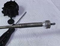 Painful as it is, however, the process is now much easier than it was when I purchased the boat. The impeller used to be covered with Jabsco's original cover, which has 6 screws that require the use of a screwdriver (image below, left). This would be almost impossible. Remember: restricted use of left hand only and no visual! More than 10 years ago I installed the Speedseal, a very clever cover kit. There are only 4 bolts, or knobs, which can be turned by hand and only 2 of them have to be taken out completely. When opening the cover, you leave the lower two bolts in place so that when you again return the cover you can just drop it in place, guided by two slits (se image below, right). The cover will stay in place by gravity until you get the two upper bolts back in place. Genius! But if I have to take out all bolts for some reason, like last time, I still have to use a tool to get the lower two bolts in place (see image #6 for a close-up and #3 for a view in action).