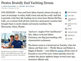 I have been reading readers' comments to the tragedies on the web, and some of the comments are quite disturbing. OK, at first thought it may appear strange, when someone deliberately takes the obvious risk to be captured by pirates. However, most of the 150 yachts (my estimate) that are heading towards the Red Sea during the month of February are not there at a whim. They are not simply "cruising" there either because they are overjoyed by it. Most of us Europeans out here are simply on our way HOME after a long journey which in our case has lasted for more than a decade. Our final destination is in the Mediterranean, where we planned to sell the yacht and buy a house instead. By postponing our return home ad infinitum, we are in reality making new plans for the rest of our lives. If I was an American or Canadian heading back home, I would, in light of the changed situation definitely take the South African way; it wouldn't make the trip dramatically longer. The same logic applies to Scandinavian yachts. Once you’ve cleared the Cape of Good Hope, the route north in the South Atlantic and then via the Caribbean back to Northern Europe should have favourable winds and currents all the way. But the point is; if your destination is in the Eastern Mediterranean, the route through the Red Sea (from the Maldives) is maybe 3,000 nm compared to roughly 15,000 nm going around Africa. The route between Mauritius and the coast of South Africa is also one of the more dangerous during a whole circumnavigation and, in addition, there will be a lot of wear on your sails and other equipment during 12,000 nm of "extra" sailing. So, I don't think comments like "dumb as a brick" are justified. What would people on land say if they call 911 when they are robbed on their home street, and get the advice to move to a safer neighbourhood, "why did you get there in the first place?" Or, "don't call us, get yourself a body guard"! And, if your only way home one night would be using the underground in NYC, would you be dumb as a brick for doing it? Having said all this, I must admit that I'm surprised that so many yachts decided to take the risk, some even took the rhumb (strait) line, which many regard as the most dangerous. We considered the risk to be captured by pirates as microscopic, but the consequences, if the shit would hit the fan, so dire, that it was impossible for us to continue. The last thing I wished for was for these seizures of yachts, the American and the Danish, to happen, so I could say: we made the right decision. But the fact remains, we did! This absurd situation, with Somali pirates winning the war against the naval forces of the rest of the planet, can only get worse until the politicians and governments of the free world have the courage to stop it. But dumb as a brick? Hardly. These unlucky cruisers took a calculated risk, which they thought they could live with, a decision they will regret for the rest of their lives. Some of them have paid with their lives already.