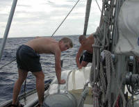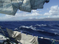 joked that here, at the “Bay of Pigs” we had already reached Cuba. Next anchorage was at Little Farmer’s Cay. Because of strong easterly winds we abandoned the plan to head directly for Conception Island, 80 miles due east. Instead we continued southeast to George Town. From Farmer’s cay you have to proceed on the eastern (windward) side of the Exumas chain and to get out into the sound you have to use one of the cuts between the cays. In our case the timing was bad because we transited Little Farmer’s Cut on the ebb. However, because of the long distance to be covered that day we could not wait for slack tide. The strong tidal current against the 20 knots of wind produced high steep waves and at one point I was almost afraid that we would not make it. One moment the bow pointed up towards the grey morning clouds and the next we heard the propeller rotating in the air. It would have been very difficult to turn back in the narrow cut, especially with the raised main sail. That was an experience that I could have done without. George Town is for many North American cruisers the turning point. You can get here without sailing over night. After this you are pretty much on your own. The town has also been nick named Chicken Harbor because quite a number of the arrivals find excuses for staying there the whole winter and then returning north in the spring. “Let’s postpone the Caribbean for the next year.” When we arrived in George Town last spring it was in the month of March and according to the official boat count the previous day there were 387 boats at anchor. This time we were early and the number was well below 100. After two days in Chicken Harbor we took advantage of the clockwise rotating winds created by a passing cold front. First we sailed northeast in southerly winds to one of our Top 5 Spots in the world, Conception Island. The next morning after a brief walk at the magnificent beach we sailed south in 25-30 knots of northerlies. The general direction was towards the Windward Passage separating Hispaniola and Cuba. The distance to Santiago de Cuba was still 350 nautical miles and we would pass some of the Bahamas out islands. We were lucky with the weather to start with. The “prevailing” southeasterly trade winds did not get established before we reached the Windward Passage and we therefore bypassed the rest of the Bahamas. During the afternoon of the second day the weather changed. The sea got confused with wind waves and swell from different directions. The wind rose to 30 and gusting to 40 knots and wave heights built to four meters. Fortunately the wind direction remained north of east. A few squalls and a thunderstorm passed without much trouble. We made good speed through the Windward Passage between Hispaniola and Cuba and rounded Punta Maisi at 3 o'clock in the morning. A cargo ship came uncomfortably close astern and made a sharp turn to avoid us only after we showed them our 1.000.000 candela spotlight. At daybreak on December 23 we were running westwards along the southern shore of Cuba sponsored by gigantic waves and steady 30 knot winds. We had a dilemma; the distance to Santiago de Cuba was still 100 miles, which was too much to be covered before dark. Consequently we had to slow down. We lowered the main and the mizzen and rolled in almost all of the genoa, but still made almost 5 knots speed over ground. Going slow without sails to keep us steadier we had an uncomfortable journey the next 24 hours. At midnight we passed the American base at Guantanamo. The VHF suddenly came to life and a U.S. Navy patrol boat told us that we were too close and they wanted us to head 3 miles off shore. I managed to persuade them to let us continue without altering course, complaining that we had had a rough sail already even without making unnecessary dodging maneuvers. "Thanks for that and Merry Christmas". On the morning of the 24 we entered the bay of Santiago de Cuba. Immediately when we were in sight of the marina we were called on the VHF and given mooring directions. Even though we were visited by eight (8!) different authorities everything vent very smoothly and friendly; Bienvenidos en Cuba. It was time to start decorating and cooking for Christmas. |