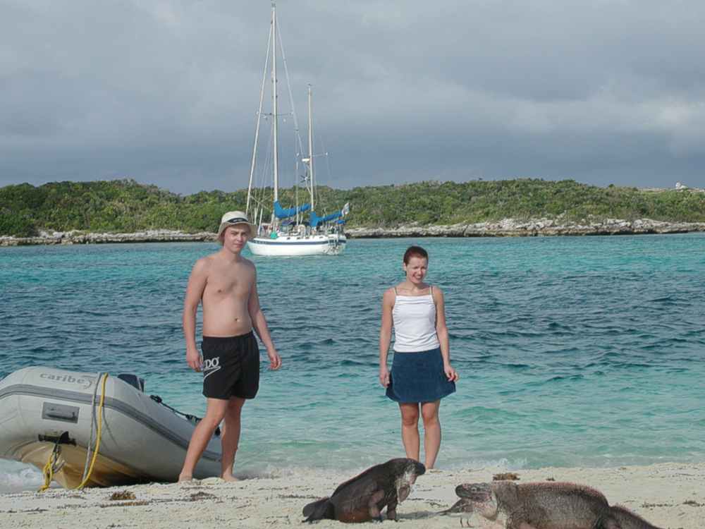 Exumas cays; greeting the iguanas at