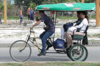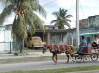 on day trips", (Lonely Planet). The city has some very beautiful buildings, most of them again very much neglected and some permanently beyond repair. There was, however, visible evidence of several projects to restore prominent houses. The most astonishing was the renovation of the old Yacht Club. The decision of restoration of the almost collapsed building had been taken only 4 months earlier and the work was almost finished. No money had apparently been spared. It would not function as a marina, but some kind of "club", called Club Cienfuegos. Probably it is also going to contain a casino. Otherwise we do not understand how the investment would ever pay off. But maybe that is not the idea? There are fewer cars in Cienfuegos than in Santiago de Cuba. Most of the traffic is on bikes, mopeds and motorcycles and an abundance of horse carriages. There are also many bicitaxis (tricycles with a double seat behind the driver). One day we rented a taxi for a tour to the old city of Trinidad, some 100 kilometers along the coast to the south east. Built in 1514, it is now a "museum town", declared a World Heritage Site by UNESCO. |