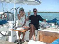 crew appeared to be in control. Probably saved their vacation. Tomas, an old friend who flew in through Havana, joined us in Cayo Largo. He had just celebrated his semi centennial birthday and decided to reward himself for that achievement with a week aboard Scorpio. We then continued along the cays to the west of Cayo Largo, feeding mostly on lobster and each evening pondering, in the cockpit under a starry sky, about many things between heaven and earth. At Nuova Gerona, the Capital and only city on Isla Juventud we tied up alongside the dock in the center of the town. The area was fenced and guarded by security forces. As we did not experience any crime during our stay there, we assume that the real purpose was to prevent us from inviting locals aboard - which was forbidden. We were only 4-5 foreign cruising vessels, one of them a British owned Swan 57 crewed by two Finnish guys. Christian and Pekka had taken a sabbatical sailing the boat over from Europe to Caribbean at the end of last year. Next summer they would sail it back across again. All locals we met were very friendly, some to the extreme, and seemed genuinely interested in our well being and our journey. The highlight of the stay in Nuova Gerona was a dinner party, which we managed to arrange in a local home. Soon it was, however, time for our guest to fly back to Havana and further home to Scandinavia, and for the crew of Scorpio to return to normal life. After clearing out of Nuova Gerona we stoped over night at the Ensenda de los Barcos an spent a few days anchored at Caleta Puerto Frances. Then we set sail for Isla Mujeres in the Mexican state of Quintana Roo. We arrived in the "Isla" after a pretty rough passage 36 hours later. The seas and current in the Yucatan Channel were confused and unfavorable, respectively. Despite 30 knots of winds on the beam, 3 sails and the propulsion engaged, our speed over ground was for hours only between 2 and 3 knots. We did not have a decent chart of the Isla Mujeres area, where we arrived after nightfall. Thanks to some very helpful cruisers in the anchorage we made it safely anyway. Kurt aboard s/y Wild Blue even came out in his dinghy to guide us in. As so many times before, we were reminded of the privilege of being part of the cruising community. More photos from our cruise in Cuba can be browsed as a Slide Show HERE. This link opens in a new window. |