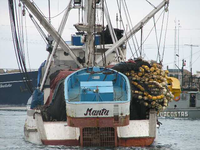 The next night we anchored among the fishing boats in the harbour of Manta. It is the base of one of the largest tuna fishing fleets of the Pacific and the city has a strong seafaring tradition. We felt strangely out of place as the only 'pleasure boat' among hundreds of fishing vessels, some up to 100 meters long. A while after our anchor was laid we were approached by the port captain in a panga, who advised us not to leave the boat unattended and to be careful: 'it is not very safe here!' We had no intention of going ashore anyway and we thoroughly enjoyed the rest of the afternoon, relaxing in the cockpit and watching the action around us. But we could clearly feel that many eyes were following us. The actual reason for our stop at Manta was the timing of our arrival at Bahia de Caraques at the entrance of river Chone. In the first half of the 20th century, this was Ecuador's most important port, but problems with sandbanks led to the development of the ports in Guayaquil and Manta, and Bahia became a backwater. It regained fame during the 1990s when President Sixto Durán had a holiday home here, and many upper-class Ecuadorians followed suit. Anyway, because of the silting of the river entrance it is only possible to enter during high tide, and in our case we were not sure if we would be able to make it in time on the day of our departure from Isla de la Plata. Therefore our diversion to Manta, which was an interesting place to soak up the atmosphere of a busy Ecuadorian port town.