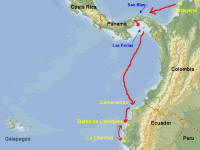 There is practically no cruising ground on the coast of Ecuador. And any cruising is made difficult by the regulations to check in and out of any port you visit. One of the few sheltered places where one can stay and bide one's time is Bahia. A couple of American former cruisers have established a facility called Puerto Amistad, meaning 'Friendship Harbor', where they have a nice clubhouse (with showers, restaurant etc) and have laid out some 20 moorings for rental. Most of the crews on the present visiting vessels are waiting for the proper time of the year to set sail for the Pacific. The cyclone season in French Polynesia lasts until the end of March and therefore one tries to avoid arriving there earlier. The trip from Galápagos to the Marquises (the usual first port of call in French Polynesia) takes around 4 weeks. When you add 2-3 weeks for a stay in the Galápagos and one week for the trip from the mainland to Galápagos you will find that the earliest day for a departure from the mainland would be around 1st of February.