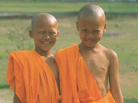 | People everywhere asked us where we come from. We told them we are from Finland, thinking that most people probably never have heard about that country. "Of course we know Finland" said everyone, happily waving their mobile phones, "home of Nokia". Everywhere you look you can see people playing with or talking on their phones. Even the monks in the temples (above right) - quite shocking ;) |