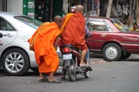 | The colorful monks are a part of the street scene everywhere in Cambodia, Laos and Thailand, which all are heavily influenced by Indian tradition. Vietnam was different because it has derived most of it's culture from China. |