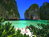 23 nm to the SW from Phi Phi, and only about 12 nm south of Phuket Island, lies Koh Racha Yai, where you will find the clearest waters around this area. Unfortunately I didn't take any photos suitable for this report, so I have to borrow the two ones below, with all credits to the indicated web sites. The bay provides excellent shelter during the NE monsoon only, but anchorage can reportedly be found on the east side of the island during the SW monsoon. |