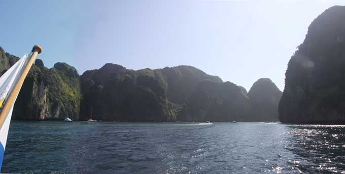 This panorama is from the mouth of Maya Bay (oposite view of the postcard a couple of paragraphs earlier. |