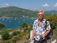 Nai Harn is a favourite place for cruisers over Christmas and New Year. Between 2009-2012 we spent three New Year's Eves here in a row. This photo at Promthep Cape with Nai Harn in the background is from 2009 when we counted more than 80 yachts at anchor. Like Phi Phi Don, Nai Harn was badly hit by the 2004 tsunami. |