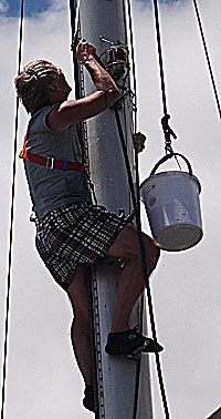As always, when arriving in a marina after a longer voyage, there were a lot of maintenance issues aboard Scorpio to attend to. This is part of the cruising life style naturally, but this time we had to deal with the annoying memories of Port Elisabeth also. In the photos below I am taking advantage of a calm day trying to wash off some grime. We haven't been able to take off the sails for cleaning yet, it has been too windy.