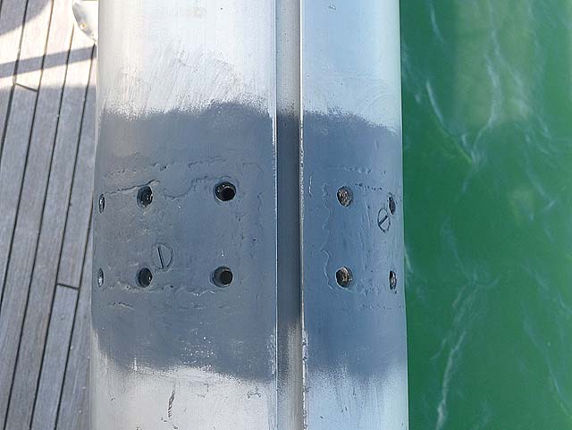 Next time I have the opportunity I will check the shroud fittings, the climb steps, the sail tracks and whatever else there is of stainless steel bolted to the masts!
