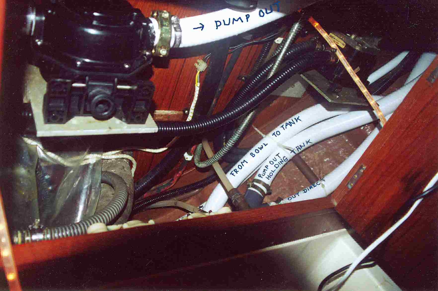 PLUMBING PROJECTS 1. Keeping the Bilge Dry I like a dry bilge, for several obvious reasons. One of them is to prevent corrosion, an other to avoid mold. It also helps to detect any leaks, of fresh or sea water, quickly (you just have to briefly lift the inspection floorboard in the galley and take a glance down into the bilge). In normal conditions water should not be entering at more than 3 locations: sea water through the stuffing boxes of the propeller and rudder shafts and rain water through the mast. But in addition to these causes, it is not unusual for unexpected leaks in various locations of the yacht (for instance we have 19 water pumps aboard! - not counting those in the diesel engine).