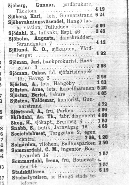 Det fanns på 1890 talet bara tre byggnadsplatser i denna ända av Brunnsgatan, av vilka "Tontti No5" (dåvarande "Brunnsgatan 5") alltså var Manners hus på bild 1, vars adress i dag skulle vara Brunnsgatan 4. "Tontti No6" var Brandthills hus (då antagligen Brunnsgatan 6), som för en tid blev Brunnsgatan 3 (III/305/1), men nu står på Brunnsgatan 5 på bilderna 2 och 3. Den tredje tomten "Tontti No7" (Seveliuska auktionskammaren) kan väl inte vara något annat än byggnaden på bild 5, dvs Parkpensionatet på adressen Brunnsgatan 2. För klarhetens skull kanske det tillsvidare vore bäst att tala om det Mannerska och det Brandthillska huset, så att vi inte råddar bort oss fullständigt. Frågan är väl om Skogs någonsin bebodde det Brandthillska huset på bilderna 2 och 3? Vi har motstridig information. Endel källor anger att Henrik Skog köpte det Mannerska huset på bild 1 på 1890 talet, men vi har ärvt foton även av Brandthillska huset på vilka det till och med antecknats att det föreställer "Våran gård före 1914". Är det möjligt att Henrik först köpte det Brandthillska huset och bodde där tills han köpte det Mannerska huset ca 1914? Det skulle förklara värför det ofta talades om Brunnsgatan 3, en nummer som det Mannerska huset aldrig haft. Denna fråga torde inte vara svår att lösa med hjälp av fastighets- och lagfartsarkiven. Det ser ut att bli besök hos lantmäterimyndigheterna och en resa till Hangö i sommar. |