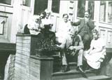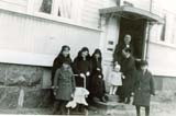 10. På dessa trappor (nån annan byggnad, kanske på Könick) ser vi igen Hildur med dottern (min faster) Disa och sonen (min far) Björn (längst till höger). Antagligen är Hjalmar mannen bredvid Björn.