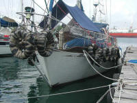 From Miraflores it is only a few miles to the Pacific along the approach channel and having passed under the Bridge of the Americas we picked up a mooring at the Balboa Yacht Club in a suburb of Panama City. It was time to open the Champagne bottle! At Balboa we met several crews of cruising boats that we had learned to know know in various anchorages during our years in the Caribbean and especially during the three weeks of waiting for the transit in Colón. Most of them were planning to head across the South Pacific along the Coconut Milk Run, with the Galapagos Islands as their first port of call. Less than a hand full of us were setting course for the west coast of the South American mainland. [ The Panama Canal Authority has an excellent Web Site here.] Next report: From Panama to Ecuador. |
