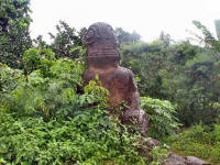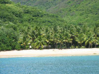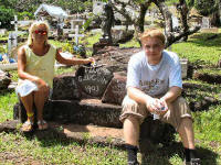 Fatu-Hiva is the island where Thor Heyerdahl and his first wife Liv spent a back-to-nature-year in the late 1930s. The anchorage at Hanavave, also known as the Bay of Virgins, is spectacular in its dramatic fjord-style beauty. The western name is a misnomer: Erosion has sculptured the huge pillars of rocks in the form of protrusions that are said to bring in mind the suggestive symbol of virility. The bay was consequently first called Baie de Verges (bay of Dicks!?), but outraged missionaries slipped a letter "i" into the word, making it vierges. And so the bay has usually since then been called Bay of Virgins by the English speaking visitors. Our next stop was at Hiva-Oa, where we anchored in Taahuku Bay. Here is the port of Atuona, the main settlement of this island and former home of such famous names as the French impressionist Paul Gauguin and the Belgian singer-songwriter Jacques Brel.