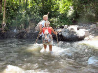 Our last island in the Marquesas is Fatu Hiva. At the time of writing this report we are anchored in Taiohae bay on the south coast. This is the island where Herman Mellville deserted the whaling ship Acusnet. He hid in the Taipi valley among the natives for a month. All Marquesan tribes practiced cannibalism at the time, and the people of Taipi where known as the cannibal's cannibals! However, Melville managed to get back to Vaiohae and signed aboard a passing Australian whaler. When he returned home some years later, Melville wrote the book Typee about his Taipi adventure. Later he wrote his most famous book, Moby Dick. From Taiohae we sailed to the nearby bay of Hakatea, also known as Daniel's Bay. From there we hiked to the foot of the 350-meter high Vaipo Waterfall, highest of the many in the islands and, someone told us, the 3rd highest in the world.