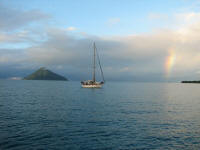 An easy overnight sail of 180 nautical miles took us from Samoa to Niuatoputapu in Northern Tonga. It is a beautiful island with a secure lagoon anchorage and a splendid view of a perfectly conical volcano 7 nm to the north. The people here do not have much, except a million dollar smile. There are no restaurants or bars. The supply ship arrives every 3 months or so, but when we visited it was long over due, so the residents were short of everything. They were particularly desperate for gasoline and diesel fuel and we traded a couple of jerry cans for mangos, papayas, limes and bananas.