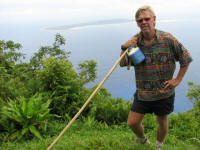 One day we hired Maleko, a local fisherman to take us across the strait to the Tafahi volcano. The shores are steep and there are no anchorages or safe landing places. The approach was not for the faint hearted: Maleko drove his boat in swells through the reef and we pulled it up on the beach during our stay on the island. The hike up to the summit 610 meters above sea level was pretty strenuous, but the view rewarding.