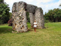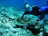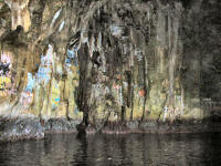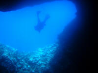 We did not get trapped for long, however, and after a couple of days we anchored at a beautiful sandy beach a few miles outside of the town. The shorelines of Vava'u are riddled with caves and crevices. Three of them are unique enough to have achieved near legendary status. We visited two of them, Swallows Cave and Mariner's Cave. Swallows cave is big enough to be entered by dinghy, but Mariner's is accessible only by diving through a tunnel from the outside. Because of the easy access to Swallows' there were the ubiquitous graffiti common to such sights, but at Mariner's there were none! The entrance to Mariner's Cave was not easy to find, it is difficult to spot from the sea. When we finally found it, we anchored the dinghy on the outside and entered diving, using only snorkelling gear. It was a great experience, as you can see from the photos (remember to click on them for a blow up).