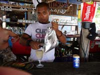 February 14 is the day of the Chinese New Year, and the present year is the Year of the Tiger. The most popular beer around also happens to be the Tiger. Here we are having a few in one of the many cozy bars at Tengah beach (photos above). |