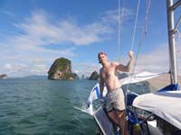 This is really not a cruising guide, but I think it is a funny title. Rather this report covers a two week-cruise in the waters between Phuket and Krabi and provides a suggested itinerary for anybody who is thinking about doing the same. The recommended real cruising guides to the area are mentioned at the end of this report. The total distance is maximum 150-200 nm depending on the route chosen. The trip can be done in 7 days, but 10-14 would be ideal. You can cruise these waters any time of the year, but it would be best during the NE monsoon (December to April). During the SW monsoon it is also possible to find shelter for anchoring, but the options are more limited around Krabi and Koh Racha Yai. Our latest cruise on this route took place around New Year and early January 2012. Aboard we had our son Jens. |