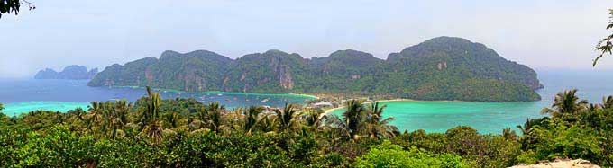 This panorama is from the mouth of Maya Bay (oposite view of the postcard a couple of paragraphs earlier. |