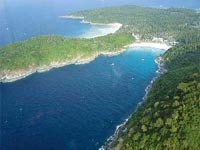 23 nm to the SW from Phi Phi, and only about 12 nm south of Phuket Island, lies Koh Racha Yai, where you will find the clearest waters around this area. Unfortunately I didn't take any photos suitable for this report, so I have to borrow the two ones below, with all credits to the indicated web sites. The bay provides excellent shelter during the NE monsoon only, but anchorage can reportedly be found on the east side of the island during the SW monsoon. |