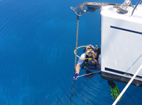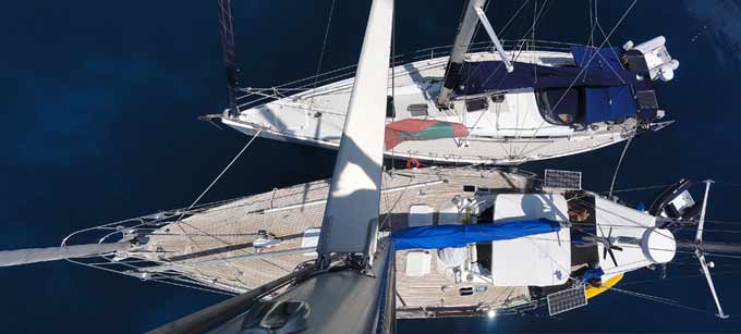 Kalle going down the chain | A rough anchorage on a lee shore Elaine is rocking her tackle |