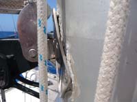 Corrosion around the gooseneck 1. CorrosionThere is also an earlier story (related to plumbing projects) about corrosion at the maststep (in the bildge area) at this LINK. Corrosion between the gooseneck fittings to the main mast and boom Under way in September 2008 between Fiji and Vanuatu I discovered, after a violent gybe, that the fitting of the main boom to the mast had broken loose on the starboard side. The reason was obviously corrosion between the two dissimilar metals; stainless steel and aluminium. I had naturally long been aware that, at some point, I would had to do repairs to correct this kind of corrosion, not only at this particular area, but all over the mast - after all, Scorpio has been around for almost 30 years now. But I didn't think that the time was here yet and other maintenance projects have had priority - not so anymore! Well in accordance with Scorpio's Law (see definition at this LINK), this incindent didn't occur last season while we were in New Zealand and doing major maintenance projects anyway, but instead in Vanutau, one of the lesser equipped areas of the world for these kind of projects. As a preliminary measure while still under way, I took a line to a winch below the boom in order to eliminate the upward pull of the main halyard. |