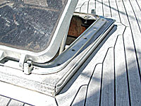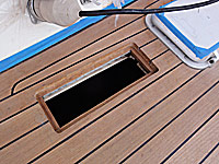 This was the second part of the renovation. Scorpio went through the first part in 2010-11. That part is covered in report #65 (see HERE). The hull was restored and painted as were the topsides. The interior was completely renovated as well and we had new sails made. The biggest projects in 2011-12 concerned a complete renewal of the teak decks and service of the masts and rigging. We also undertook numerous additional modernizations and improvements. New teak decks - and some other deck based enhancements As you can see on the photo above, there was quite enough of teak thickness in the old teak deck. However, those decks were laid with the use of screws and the plugs covering the screws had become thin and were coming loose (see a previous story). We now decided to lay the new decks without screws. Had we done the same the previous time (in 1995), there wouldn't have been any need to renew the decks.