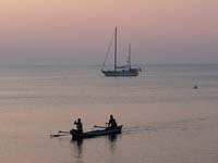 | Anchored in front of an Islamic village, you will usually get a wake up call by the muezzin around 4 o'clock in the morning! Everywhere, regardles of faith, you find yourself constantly surrounded by children in canoes hanging to your toe rail and adults trying to sell you something. Sometimes the attention can be overwhelming. |